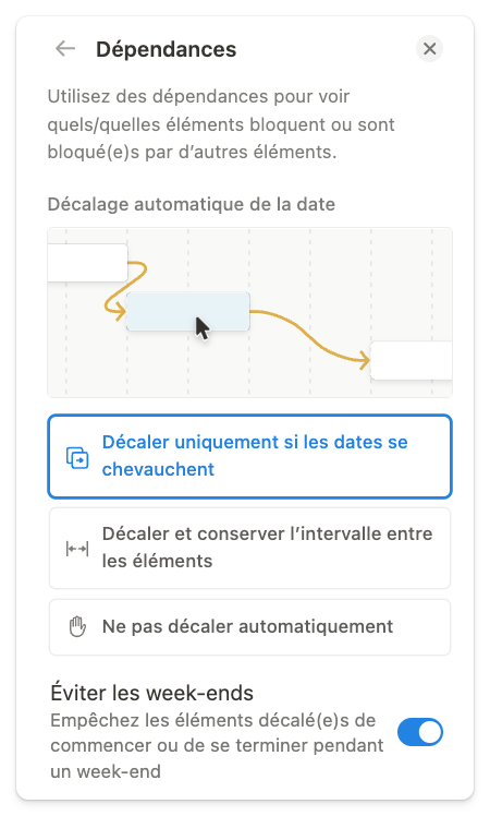 Déterminez les options de décalage automatique et cliquez sur “Activer les dépendances”