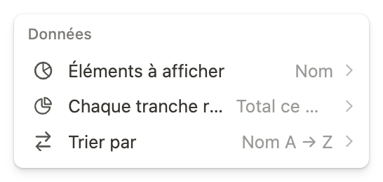 Pour modifier un graphique, cliquez sur les 3 points en haut à droite de votre vue de base de données. Parmi les options de personnalisation, on retrouve :